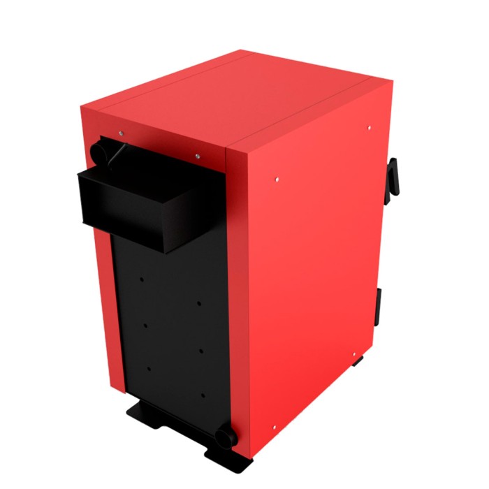- Котел має достатньо велику площу теплообміну, за рахунок водяної рубашки навколо топки.