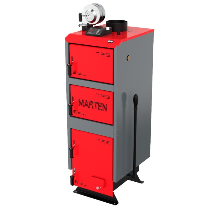 Мартен Комфорт дуже простий в чисткі. Полки теплообмінника легко почистити від сажі. Колосники чистяться за допомогою бокового важеля (рушта). Особливо це актуально при використання вугілля, так як воно має здатність спікатися та коксуватися на колосниках.