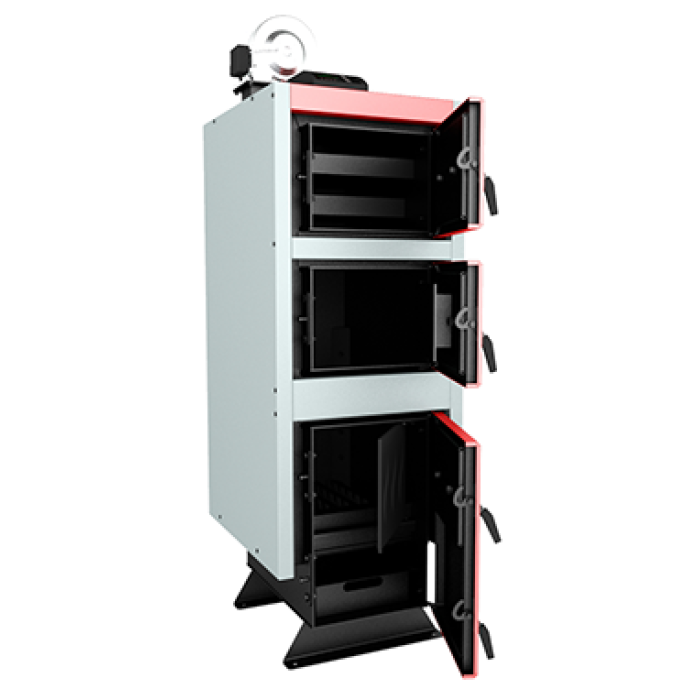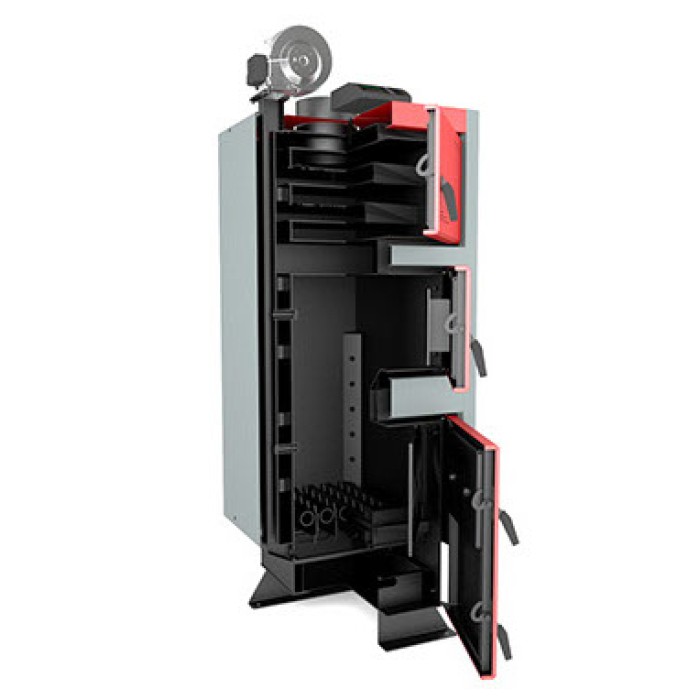 Котли цієї серії мають чотирьохходові теплообмінники з великою площею теплопередачі, що забезпечує постійно високий ККД котла при використанні різних типів палива. Система форсунок подачі повітря в котлі зроблена таким чином, щоб ефективно спалювати дрова зверху вниз, і відбувалось допалювання піролізних газів. Така система забеспечує довготривалий період горіння палива при одному завантаженні (12-15 годин на дровах, до 24 годин на вугіллі).